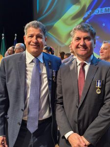 O presidente do Sindicato do Comércio Varejista do DF, Sebastião Abritta, foi agraciado com a medalha do mérito do Conselho Comunitário de Segurança (Conseg). Com a presença de diversas personalidades, a solenidade foi na terça-feira, no auditório do Colégio Militar Tiradentes. Na foto, Abritta (D) e o secretário de Segurança Pública, Sandro Avelar.