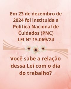 Em dezembro de 2024 cuidadoras de pessoas e que realizam cuidado doméstico sem remuneração tiveram a atividade de cuidado reconhecida como trabalho no Brasil. Isso ocorreu após a aprovação da Lei 15.609 na Câmara dos Deputados e no Senado. Essa Lei, que tem origem no governo federal, criou a Política Nacional de Cuidados (leia aqui). A lei considera que o cuidado é um trabalho, uma necessidade e um direito.