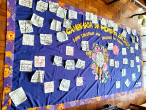 Painel do Coletivo Filhas da Mãe criado pelo Coletivo Borda Luta perguntou às mulheres participantes da 5a. Conferência: “Como Construir Uma Sociedade do Cuidado? E elas responderam (foto 02). Na foto 01, à esquerda, no meio, Celinha Neves, uma das coordenadoras do Coletivo.