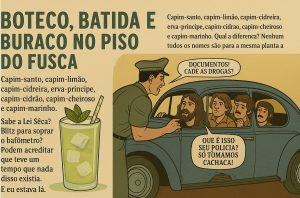 Calhou do tal amigo do amigo sentar onde ficava a tal armadilha. E ele, acreditando que o motorista cabeludo de olhos vermelhos, da mistura de lentes de contato com cachaça, que nunca fumou nada na vida, também era chegado a um cigarrinho do capeta, sacou um caixinha de fósforo com a erva e gentilmente ofereceu, vamos acender unzinho?