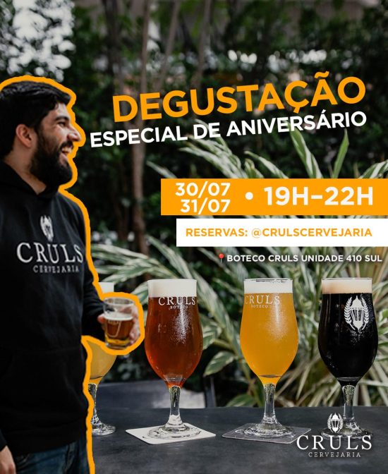 Mais um aniversário da Cruls chegando e este ano além das clássicas promoções e lançamentos teremos também um evento de degustação no Cruls Boteco Asa Sul! Venha conhecer as novas cervejas em uma degustação guiada de sete rótulos pelo beer sommelier e sócio da Cruls, Pedro Capozzi.