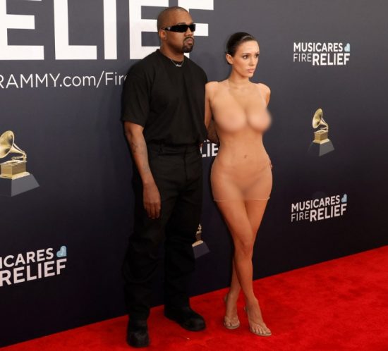 O nome de Bianca Censori viralizou nas redes sociais após a aparição da modelo no Grammy (2/2) em um vestido completamente transparente — e nada por baixo. Em contraste com o marido, Kanye West, todo coberto de preto da cabeça aos pés.