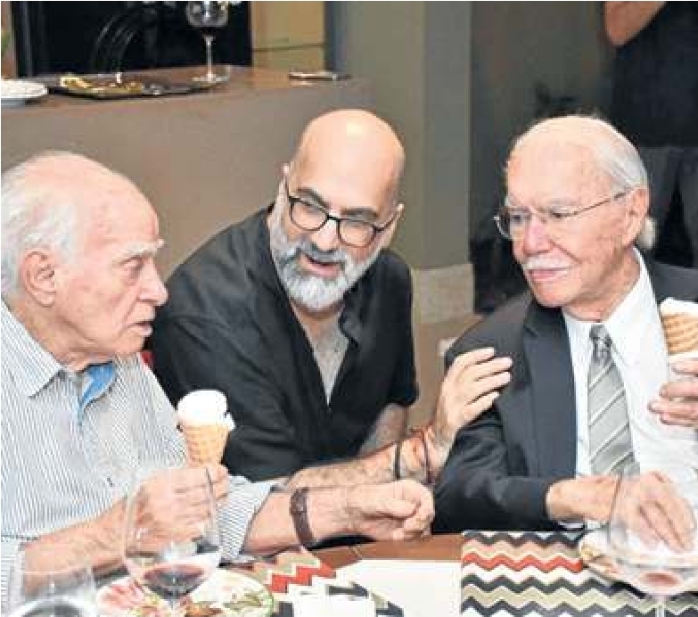 Noite literária/ Em São Luís, o ex-presidente José Sarney e os escritores Ignácio de Loyola Brandão (E) e Valter Hugo Mãe (foto) trocaram impressões sobre literatura, cenário político e outros temas, na noite de Páscoa, degustando um sorvete de coco.