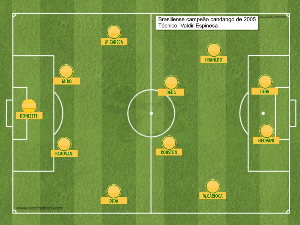Edinho Nazareth, o Edinho, levou o Brasiliense ao título da Série B em 2004, mas foi Valdir Espinosa quem comandou o time na inédita partida na primeira divisão do Brasileirão, em 24 de abril de 2005, no velho Mané Garrincha. Empate por 2 x 2 com o Vasco dentro das quatro linhas e derrota no tapetão. O STJD havia condenado o time candango a jogar com portões fechados. O presidente Luiz Estevão peitou a decisão, comercializou ingressos e perdeu o ponto da partida nos tribunais, para tristeza de Valdir Espinosa. O mandatário do Vasco à época era Eurico Miranda.