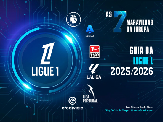 Avião no pátio. O aeroporto Charles de Gaule dá boas-vindas à série “As 7 Maravilhas da Europa” do blog Drible de Corpo. Depois das turnês pelo Holandês e o Português, estamos na França — o palco da Ligue 1. Na terceira das sete apresentações da temporada 2025/2026 das principais ligas nacionais do Velho Continente, fazemos check-in, deixamos as malas no hotel e vamos aos 18 clubes candidatos ao título para ajudar o técnico Carlo Ancelotti a montar a Seleção Brasileira. Por sinal, o treinador conhece muito bem o Campeonato Francês. Levou o PSG ao título em 2012/2013.