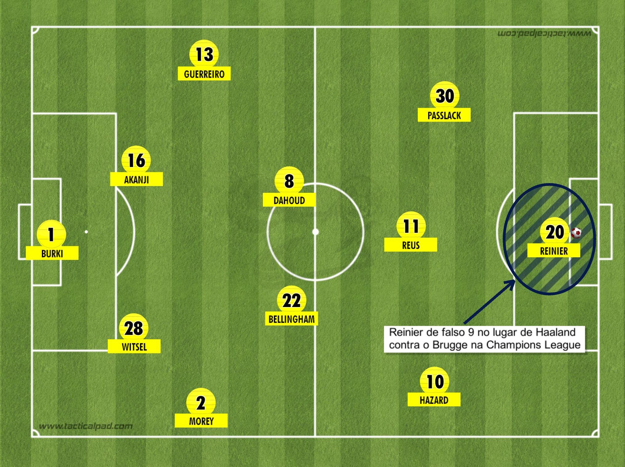 Vendido ao Real Madrid, Reinier foi emprestado ao Borussia Dortmund. O então técnico Lucien Favre tinha a mesma opinião de Jorge Jesus sobre o brasileiro. Provou isso na vitória do clube alemão por 3 x 0 contra o Brugge pela fase de grupos da última Champions League. Entrou no segundo tempo com a missão de substituir o norueguês Erling Haaland.