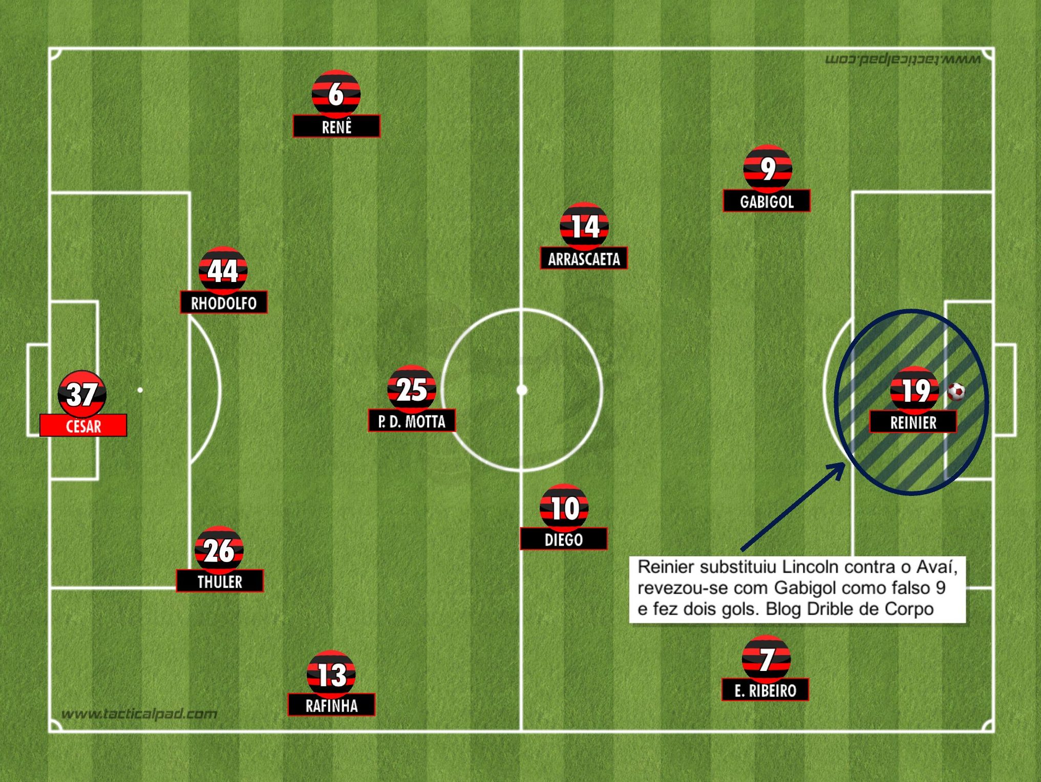 Jorge Jesus via Reinier com potencial para a função de falso 9. Fez esse teste na goleada do Flamengo por 6 x 1 sobre o Avaí no Campeonato Brasileiro de 2019. O brasiliense entrou em campo no lugar de Lincoln no segundo tempo e fez dois gols revezando-se no comando do ataque com Gabriel Barbosa. Foi umas das melhores exibições de Reinier no Flamengo em um papel que não era novidade para ele. Havia atuado assim na base do clube e da Seleção.