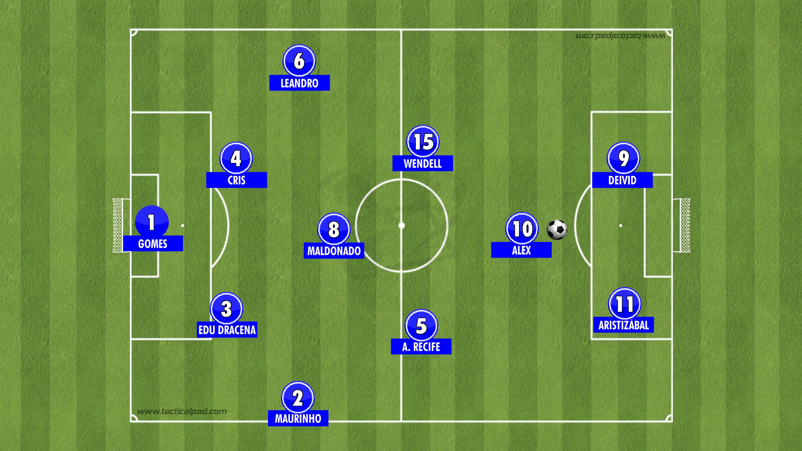 Luxemburgo tinha Alex na única conquista da carreira na Copa do Brasil. O camisa 10 atuava à frente dos volantes Augusto Recife, Jardel (depois Maldonado) e Wendell no sistema 4-3-1-2. Era o arco e às vezes flecha para abastecer Deivid (depois Mota) e Aristizábal.