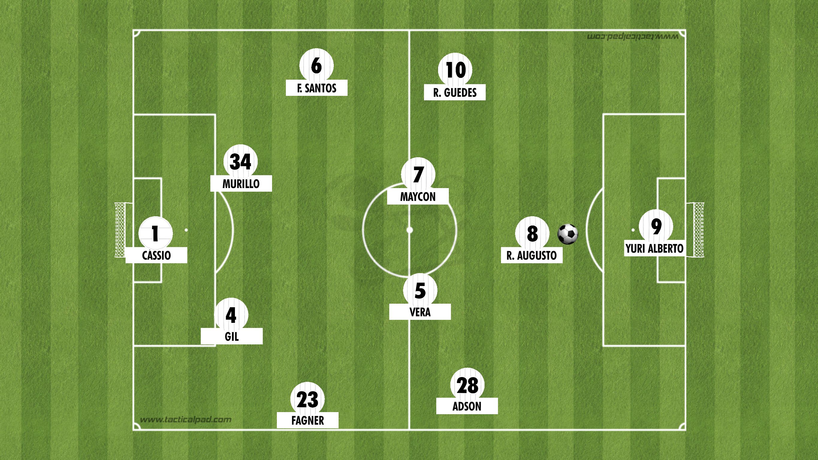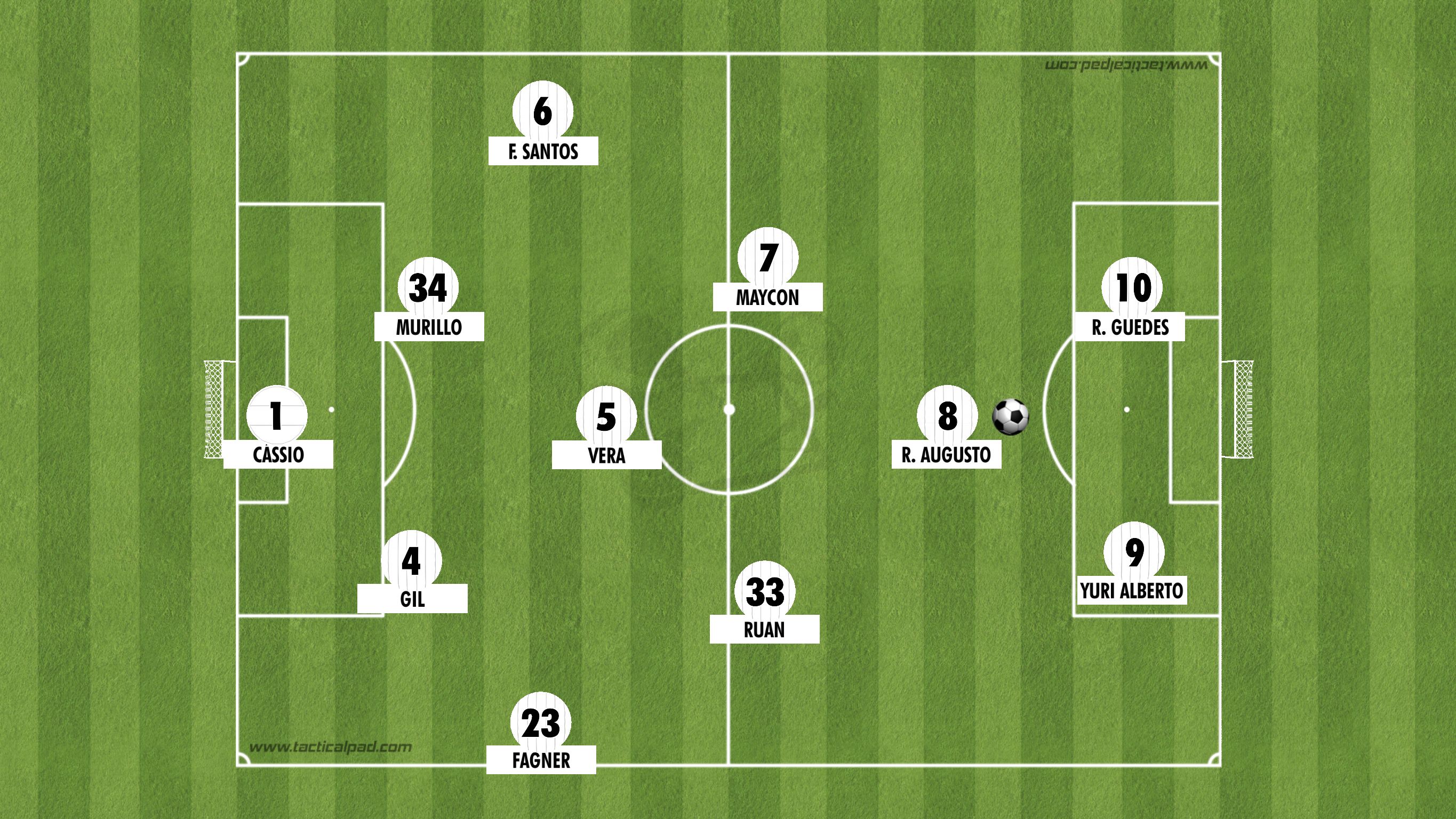 Renato Augusto é desses. Encaixa perfeitamente no velho repertório do comandante alvinegro. Com liberdade, então, nem se fala. Assim como o Alex dos tempos do Cruzeiro, Renato Augusto tinha três volantes atrás dele: Ruan Oliveira, Fausto Vera e Maycon; e dois atacantes à frente: Róger Guedes e Yuri Alberto.