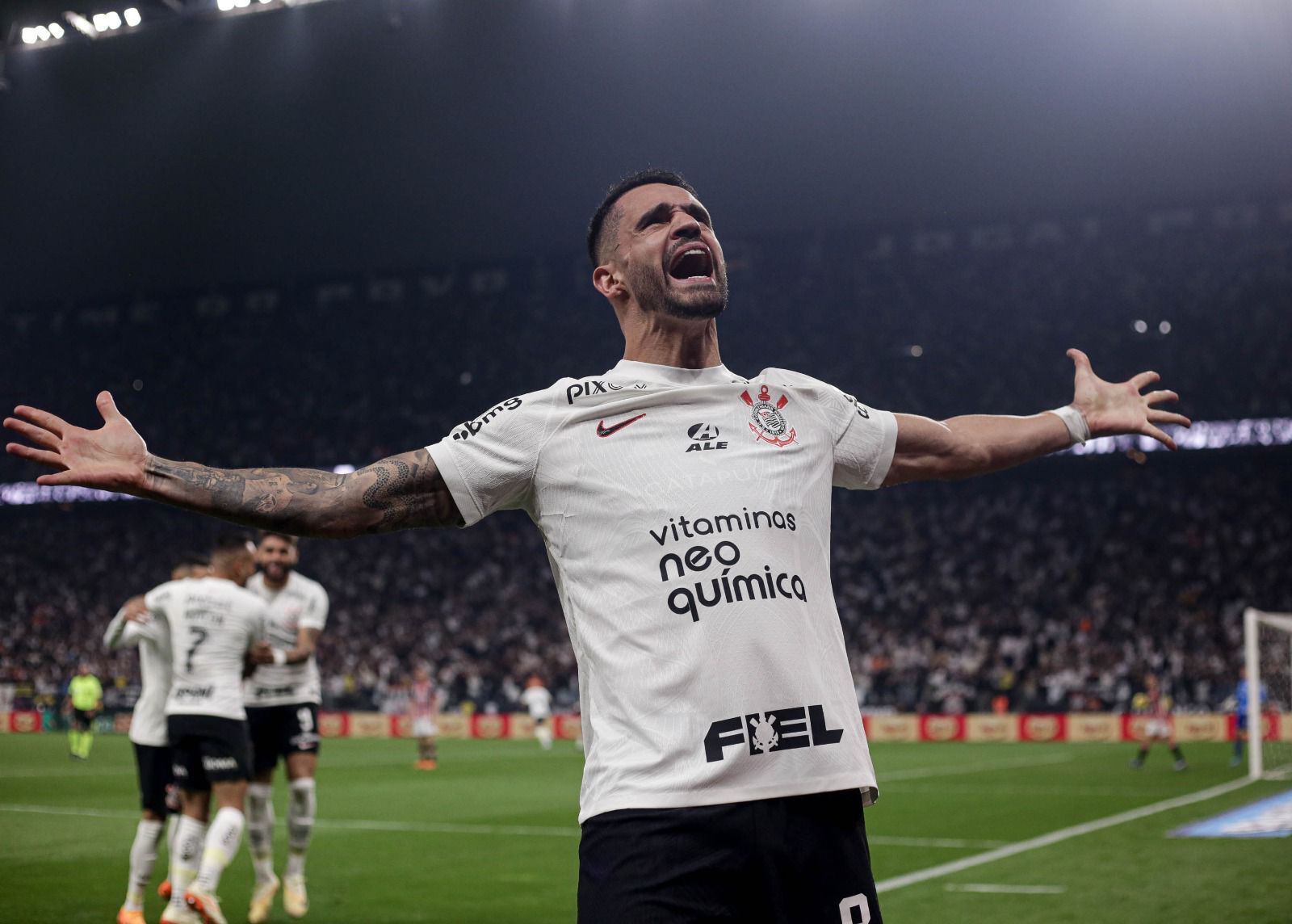 Renato Augusto em dose dupla de gols na Neo Química Arena. Foto: Rodrigo Coca/Ag Corinthians
