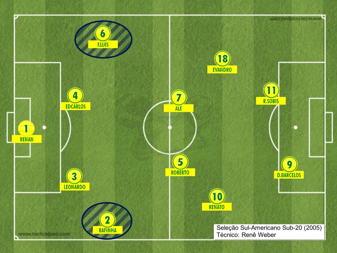 Renê Weber mudou a defesa para o Mundial Sub-20 da Holanda. Rafinha continuou dono da lateral direita, mas Filipe Luís perdeu a posição para Fábio Santos, hoje no Atlético-MG. “Nós só perdemos o Mundial (terceiro lugar) porque estava nascendo um gênio”, ri Renê Weber, traumatizado com um argentino chamado Lionel Andrés Messi Cucittini.