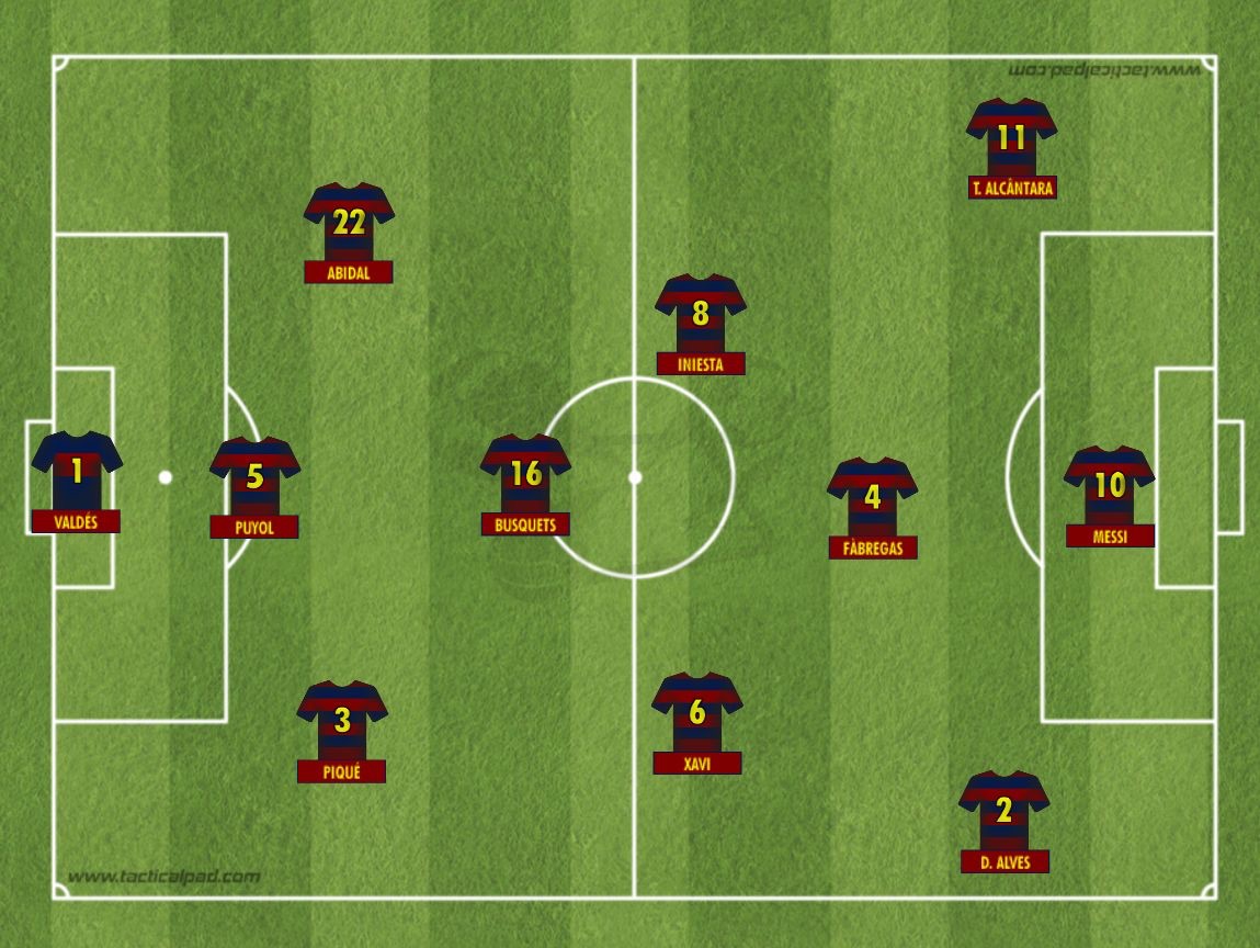 A final acabou no primeiro tempo. O Barcelona goleava por 3 x 0 no intervalo, gols de Messi, Xavi e Fàbregas. A Pulga ainda fez o quarto na etapa final. Neymar e companhia não foram páreo para um Barcelona impecável configurado num surpreendente 3-4-3.