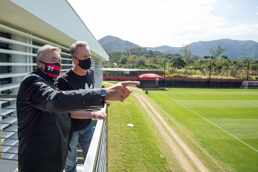 Domènec Torrent é apresentado no Ninho do Urubu. Foto: Alexandre Vidal/Flamengo