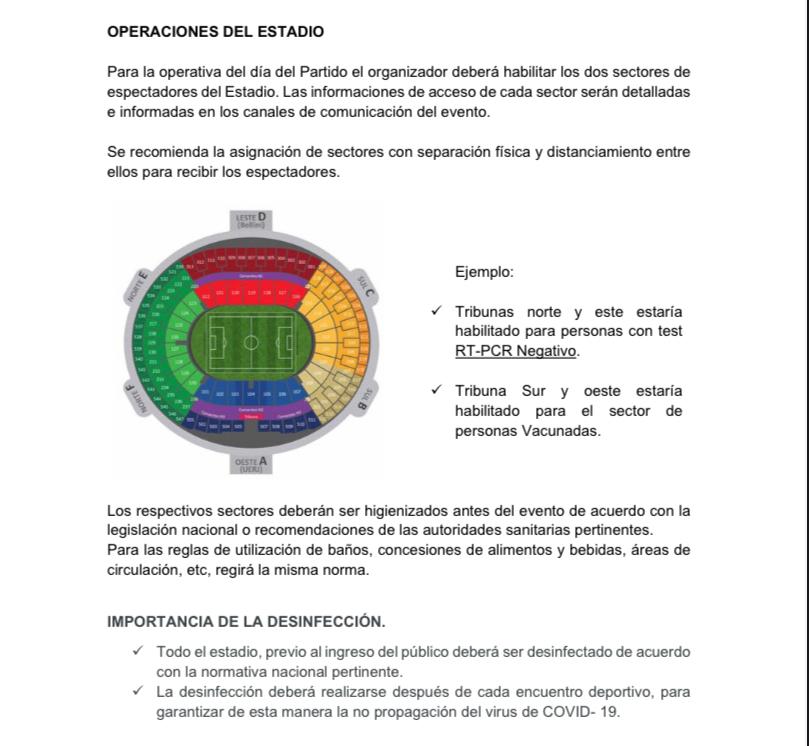 O Protocolo de Volta aos Estádios, inclusive, recomenda opções de compra de ingresso separadas para testados pelo PCR e imunizados pela vacina. Sugere, também, que esses dois tipos de público fiquem separados na arena. Uma arte da Conmebol divulgada no post anterior do blog ilustra como deve ser.