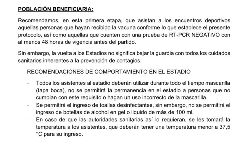 O texto da Conmebol é claro. Recomenda que tenham acesso ao estádio torcedores vacinados, assim como aqueles que apresentem comprovante de RT-PCR Negativo com ao menos 48 horas de antecedência da realização da partida.