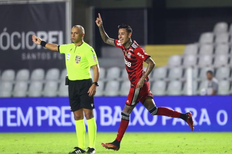 O Flamengo teve 67% de posse da bola contra 33% do Santos, mas era facilmente agredido quando sofria o desarme. O Peixe acionava rapidamente o contra-ataque e encontrava clarões no sistema defensivo carioca. Assim saiu o gol de Steven Mendoza depois de um passe em diagonal da direita para a esquerda. Soteldo desfilou em velocidade pela “avenida Wesley” e teve todo tempo do mundo para esperar o tempo certo de dar assistência para Mendoza estufar a rede no setor desocupado por Léo Pereira e Ayrton Lucas numa total falta de sincronia tática.