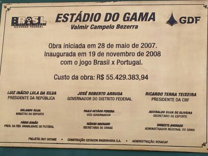 Inaugurada em 19 de novembro de 2008 com direito a Romário como garoto-propaganda e homenagem ao ex-presidente Luiz Inácio Lula da Silva em uma placa no estádio, a arena customizada pela Fifa para o Mundial Sub-17 ajudou a derrubar, por exemplo, um badalado ex-presidente do Barcelona. O blog apurou que o processo movido pelo Ministério Público contra Sandro Rosell foi transitado e julgado pelo Superior Tribunal de Justiça (STJ) em março deste ano. O processo referente ao polêmico amistoso entre Brasil e Portugal realizado no Distrito Federal foi trancado em fevereiro deste ano.