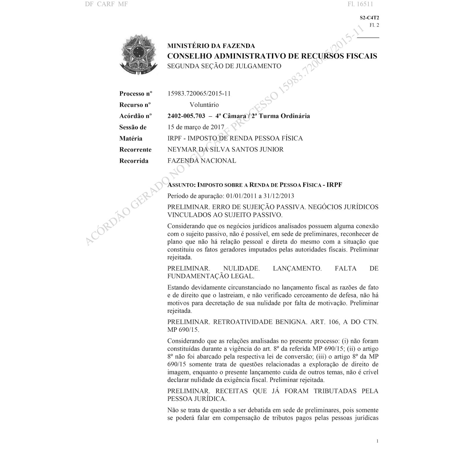 A questão foi encerrada durante o mandato do ex-Presidente Michel Temer, em 15/03/2017, conforme Julgamento em 2.a instância administrativa (Acórdão n.o 2402-005.703, 2a Turma Ordinária da 4a Câmara da 2a Seção do Conselho Administrativo de Recursos Fiscais – “CARF”.