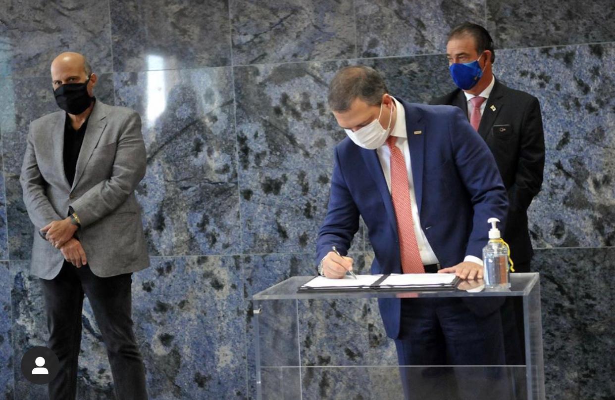 Assinado na manhã desta quinta-feira, no Palácio do Buriti, pelo vice-governador do DF, Paco Britto; o presidente do Banco de Brasília, Paulo Henrique Costa; a secretária de Esportes e Lazer, Celina Leão; e o mandatário da Federação de Futebol, Daniel Vasconcelos, o protocolo prevê investimento de R$ 6 milhões no futebol Candango até 2022 – quando expira o mandato do chefe do executivo local, Ibaneis Rocha, e terá regras rígidas acompanhadas de fiscalização para quem pretende aderir ao projeto.