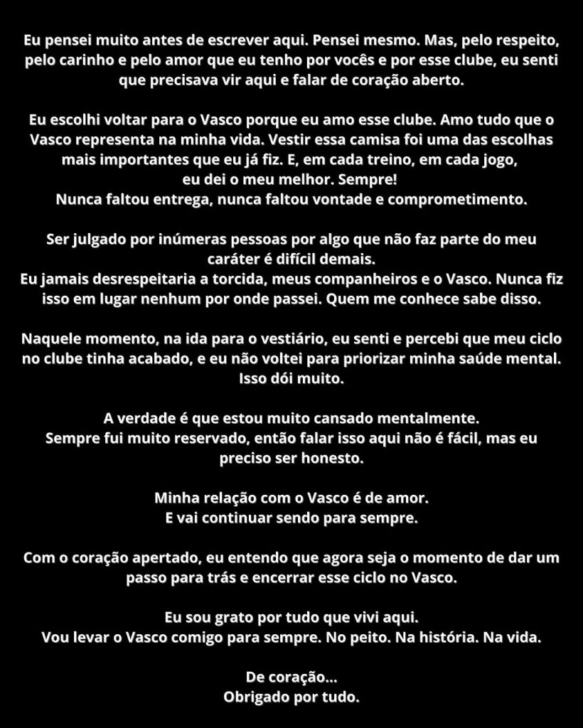Philippe Coutinho é mais um ídolo a dar um basta na relação tóxica com torcedores que dizem amá-lo, idolatrá-lo, querê-lo com o uniforme do clube do coração. O fim da relação do camisa 10 com o Vasco, manifestada em uma carta aberta publicada na conta pessoal do jogador de 33 anos no Instagram, não deveria ser assim.