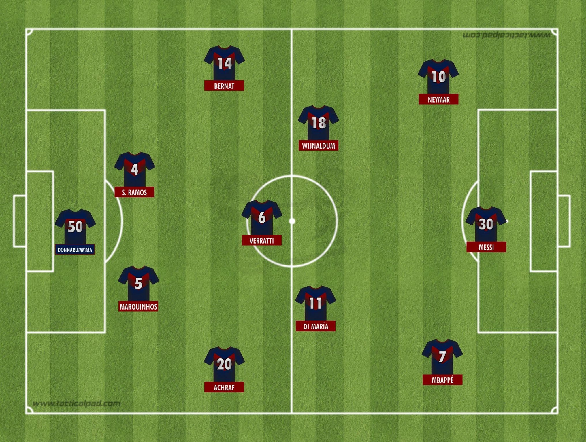 Esse é um dos pontos relevantes no debate tático. Pochettino estaria disposto a formar o time com linha de três defensores? Neste caso, Sergio Ramos, Marquinho e Kimpembe podem causar desconforto no meio de campo ou no ataque. Partindo do princípio de que Messi, Neymar e Mbappé são os intocáveis, Hakimi Achraf e Bernat ocupam as laterais. Portanto, restariam duas vagas na linha. Todas no setor de marcação e criação. Meus favoritos seriam os ótimos Verratti e Wijnaldum. Sobram Gueye e Paredes, por exemplo.