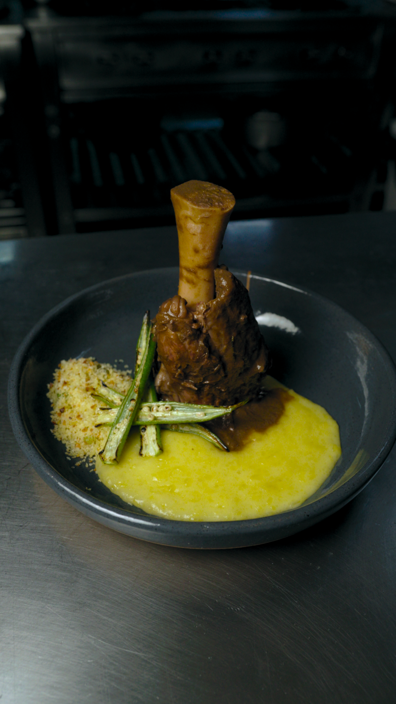 O restaurante Dom Francisco da 402 Sul, que há 12 anos participa da Associação dos Restaurantes da Boa Lembrança (ARBL), pela primeira vez abriu mão da receita de bacalhau na sugestão do prato anual e optou por uma carne bovina no corte stinco, que é a canela do animal, apresentada magistralmente em primeira mão esta semana. Bem temperado e assado lentamente no forno, o corte de vitelo vai à mesa com seu próprio molho escoltado de musseline de mandioca com queijo meia cura, que dá um toque cremoso ao prato. Acompanha farofa de baru, cuja crocância combina bem com quiabo grelhado.
