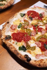 Já a Cerratense é feita com queijo Nete, produzido com leite cru de vaca Jersey do Cerrado mineiro (medalha de prata no Mondial du Fromage 2025, realizado em setembro na França), ricota de búfala, linguiça caipira, passata de tomate orgânico, praliné de gergelim Kalunga e pesto cerratense. Os produtos regionais estão presentes ainda em outras opções da Baco, como drinques e saladas.