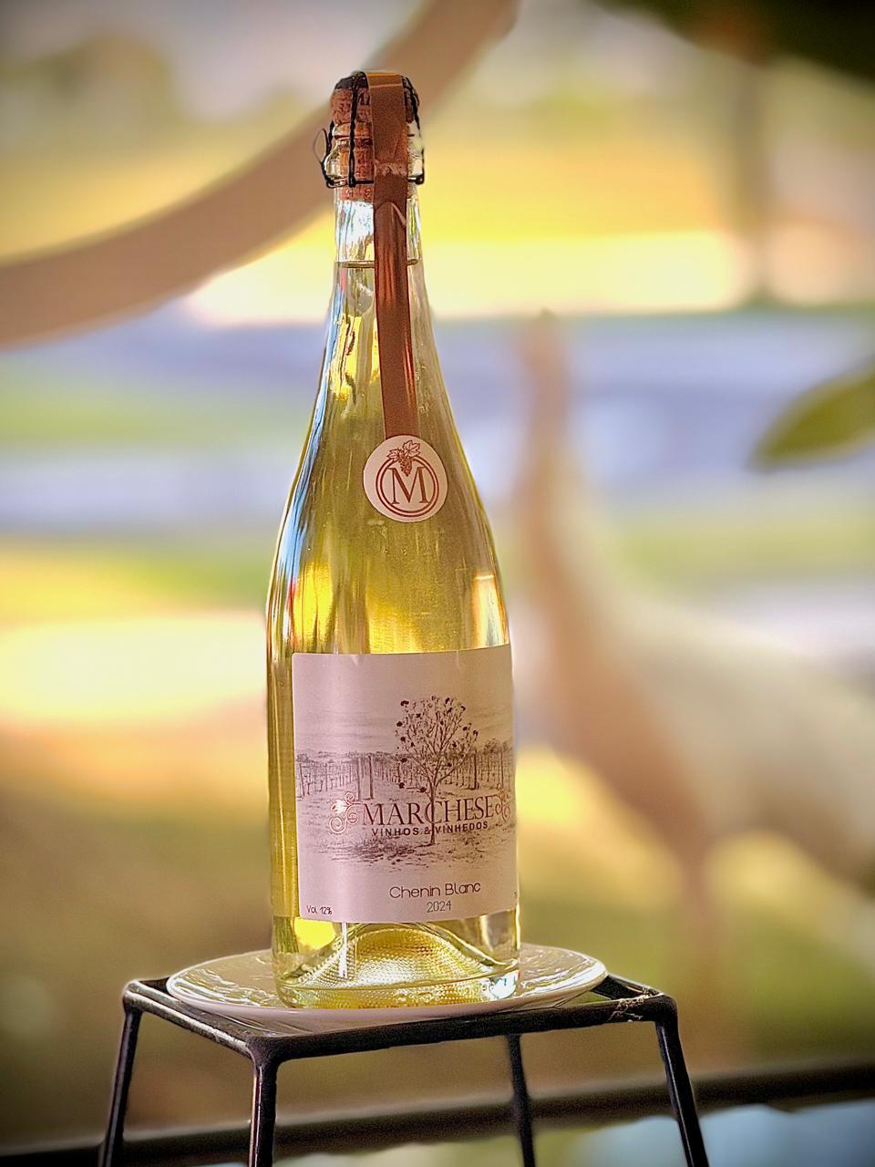 “A inspiração deste espumante nasce do ipê branco, árvore símbolo de Brasília, conhecida por sua resistência silenciosa e por encontrar força para florescer no inverno seco do Cerrado”, informa o contra-rótulo da garrafa, que diz ainda ter sido o ipê plantado no vinhedo em homenagem ao patriarca Elias Marchese, de 76 anos presente no lançamento do espumante ao lado da mulher, Odete Trentin Marchese.