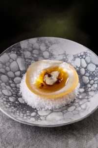 A azedinha, marca registrada da família Troisgros, surge de forma surpreendente na sobremesa – um ninho de abelha – com mel de Mandaçaia (abelha nativa sem ferrão) e missô. E para finalizar a experiência vêm à mesa petit fours do pequeno produtor de Minas Gerais, Céu de Minas. “Continuar me modernizando faz parte do meu DNA, sempre buscando uma evolução natural valorizando a cultura brasileira e minhas raízes francesas”, enfatiza Claude.