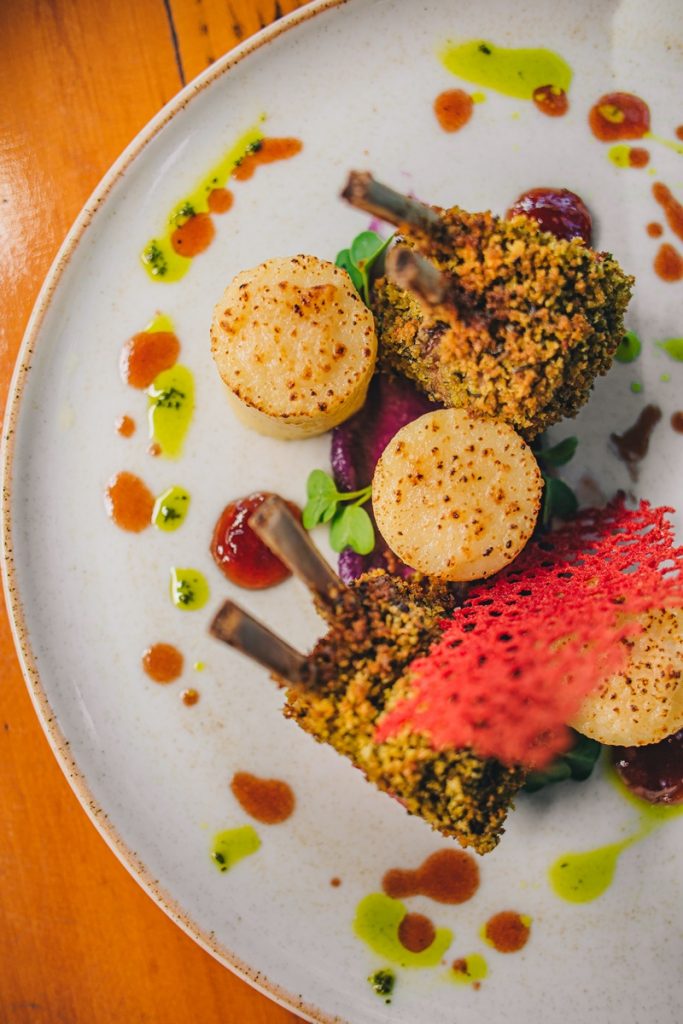 Cordeiro em crosta de ervas do Aroma. crédito: Luara Baggi/Divulgação