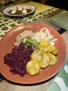 A proposta está presente no enxuto menu de 10 pratos e duas sobremesas, começando pelo Abre Alas, com pão de fermentação natural da padaria Sova (parceira da casa), paté de galinha caipira, geleia de cebola roxa e picles de maxixe (R$ 28). Outra composição simples traz rabada com guioza chapada na frigideira, pimenta e cebolinha (R$ 39).