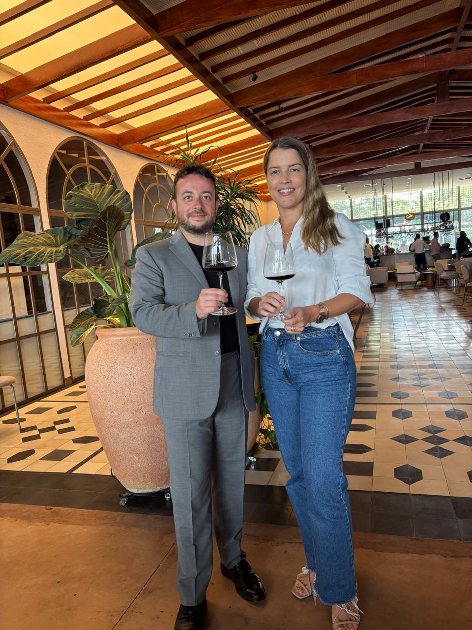 Refinada adega de múltiplas opções compõe a ambientação com rótulos trazidos do mundo inteiro por importadoras, como a Del Maipo e a Porto a Porto — esta última a primeira a promover degustação na sala Vip, tendo à frente Stefano Colombo, gerente de exportações da vinícola italiana Luccarelli, que veio a Brasília lançar o Luccarelli Gold Sangiovese