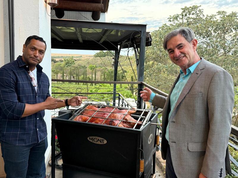 O porco Duroc, produzido no cerrado, foi a estrela do jantar que seguiu a degustação. Assado lentamente por seis horas na brasa, o suíno esteve a cargo do especialista Agner Mattos, dono da grife Tudo de Porco, que se prepara para abrir loja no mercadão de São Paulo.