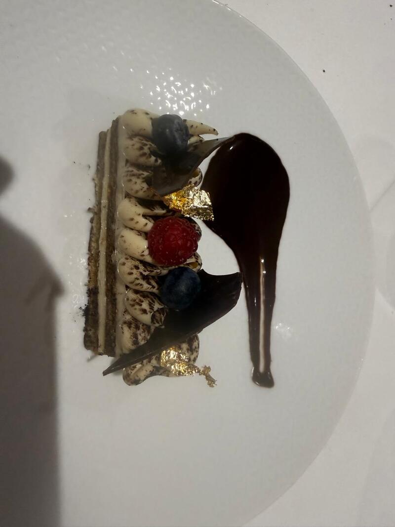 As sobremesas seguem a tradição natalina, como panetone, chocotone, rabanada e büche de Noël (torta francesa de chocolate em forma de tronco de árvore). Além da torre de macarrons, fraisier de morango, tartelete de frutas vermelhas, tiramisù e pudim.