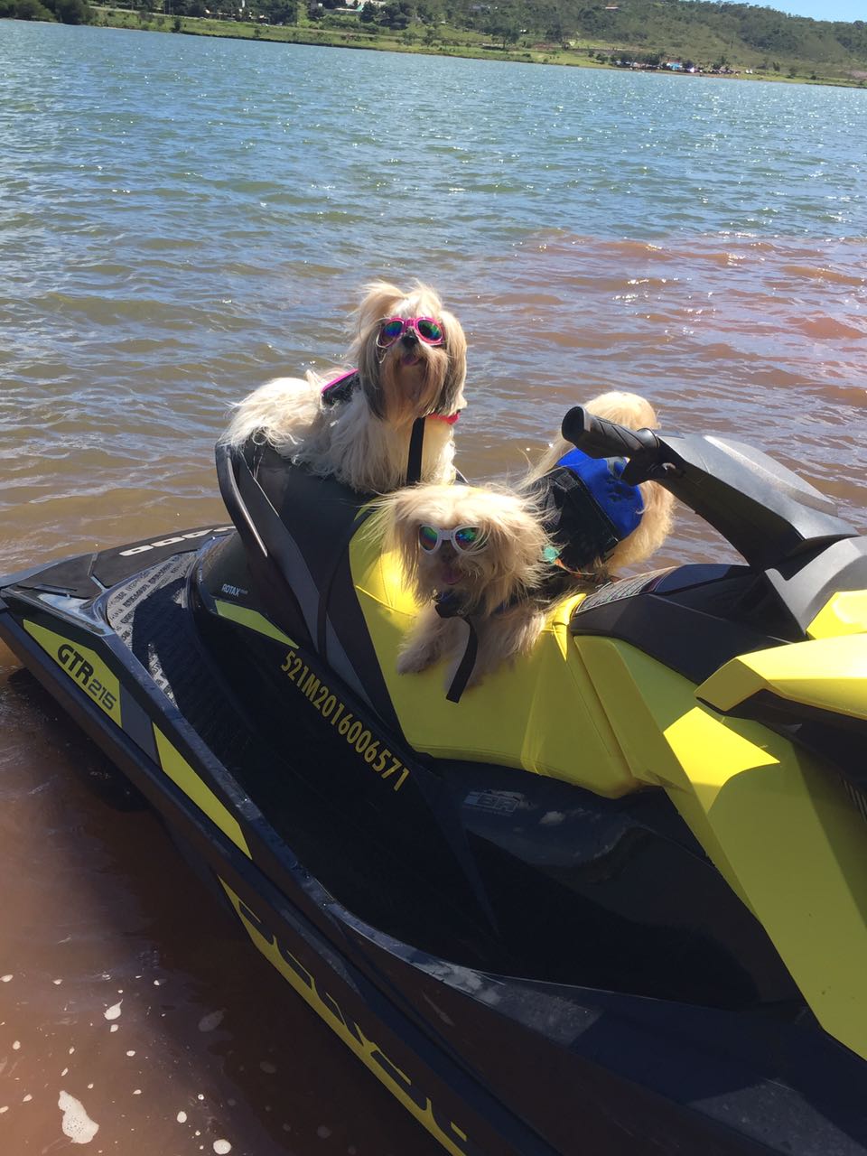 Chico e Brisa são fãs de esportes aquáticos. “No lago, eles adoram aproveitar o fim de semana andando de jet ski”, revela a tutora, Daniele Wolff