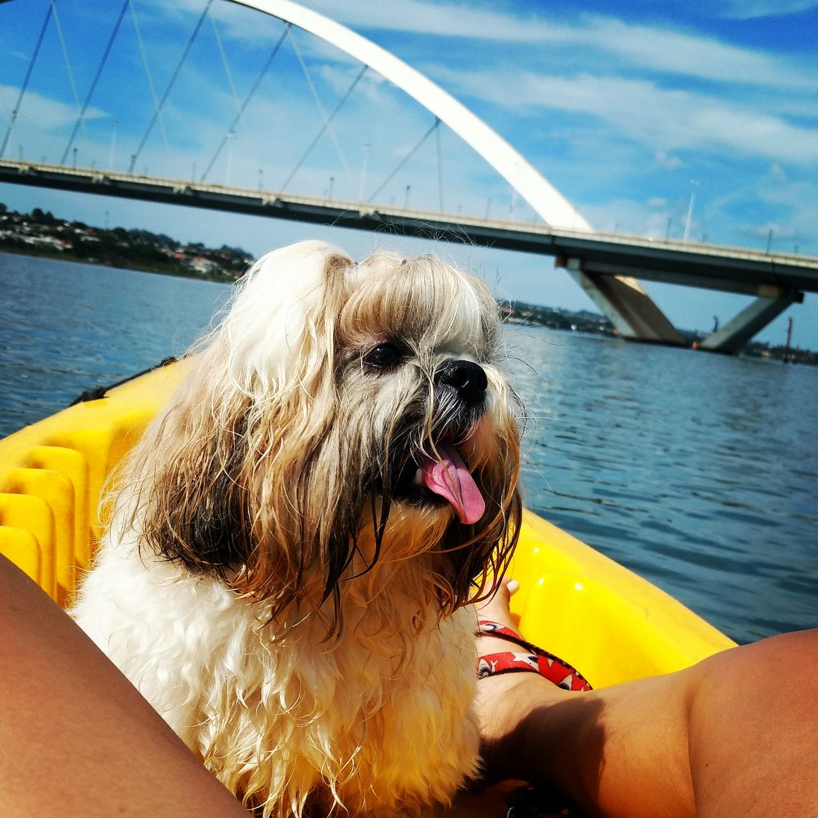 Thor também é adepto de passeios aquáticos: “Eu gosto de leva-lo na ponte JK para andar de caiaque, por que além de ser um local que super aceita eles, dá pra ele se refresca”, diz Raniérica Assunção