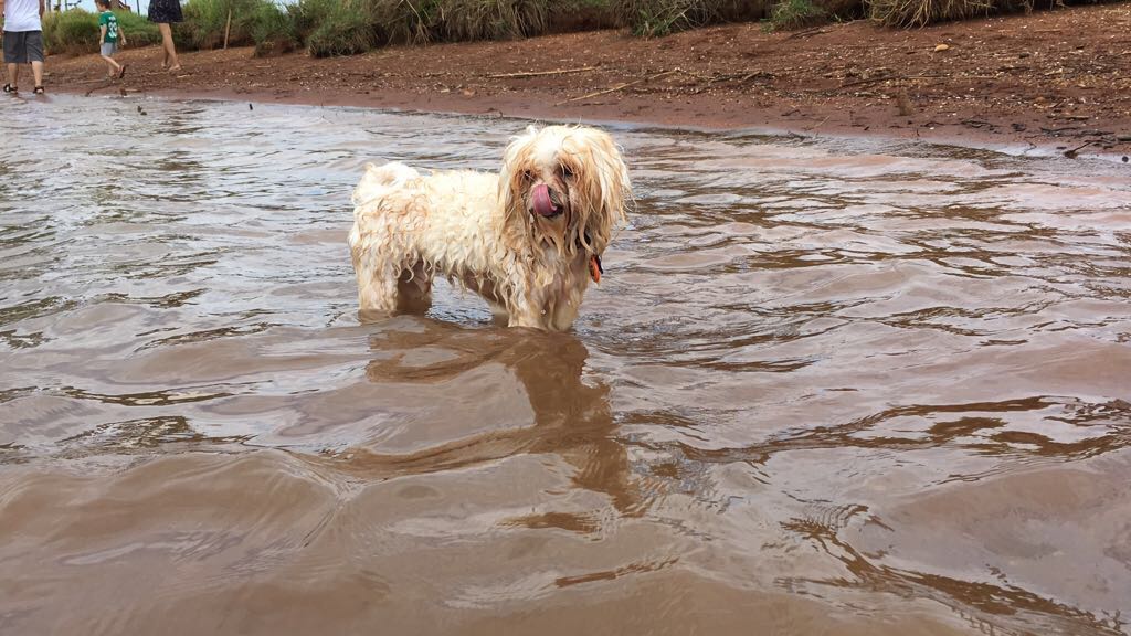 Cloé no Parque das Garças: “Lá ela tem liberdade pra brincar e se divertir na água, coisa que ela adora fazer”, diz Thayná Barbosa Dias Pereira.