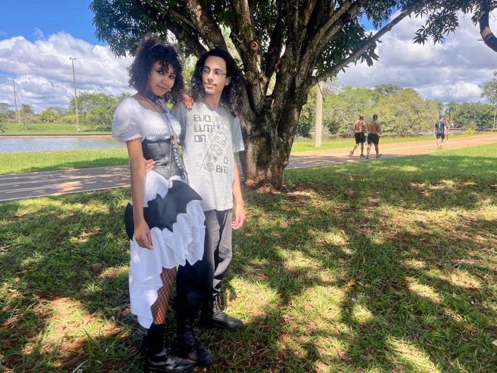 Num domingo de sol e luz de maio, um jovem casal adepto do estilo gótico, muito à vontade no ambiente, se destaca na cena do Parque da Cidade enquanto posa pra fotos.