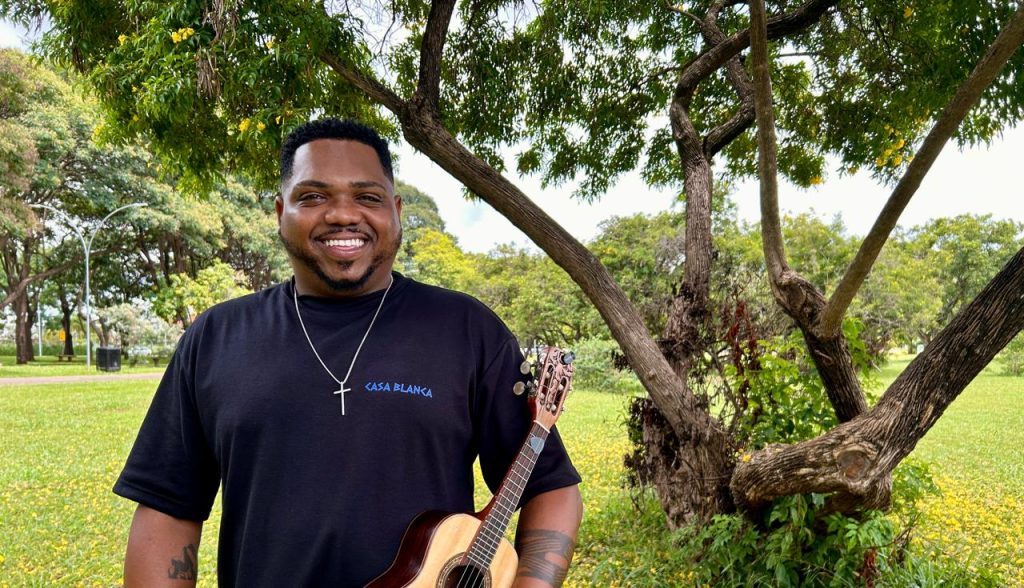 Jeferson é de Brasília, “nascido e criado”, morador do Riacho Fundo 2, casado, pai de Mila, um bebê de 5 meses. Formado em jornalismo, iniciou sua carreira como radialista, trabalhou em jornais, revista, editora, mas deixou a carreira na área de comunicação pra “viver de música.” Ele pertence a uma família de músicos e musicistas vindos do Rio de Janeiro, de quem herdou o DNA do samba. Multi-instrumentista, agora também cantor, Jeferson conversou comigo sobre sua experiência com a música, o grupo do qual faz parte, o Parque e sua visão de sucesso. Gente boa demais, simpático, bem-humorado, com jeito de pessoa feliz, foi um prazer nossa conversa, que compartilho em seguida.