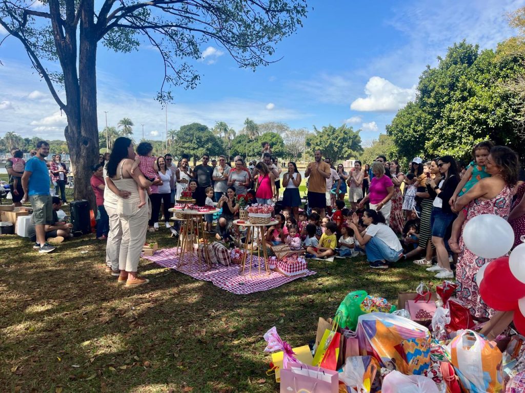 R- A nossa maior dificuldade era encontrar um espaço para a quantidade de pessoas que foram convidadas e o fato de que o Parque da Cidade é belíssimo, ele ajuda bastante, deixa tudo mais bonito, e você não precisa decorar, já que Deus trouxe essa criação belíssima pra gente.