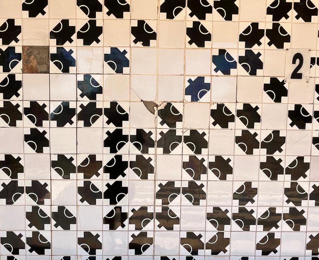 Além das paredes, as colunas dos chuveiros também tem os mesmos azulejos, que são familiares a todos, mas tenho dúvidas se a maioria das pessoas sabe o quanto são valiosos na história da arte da capital.