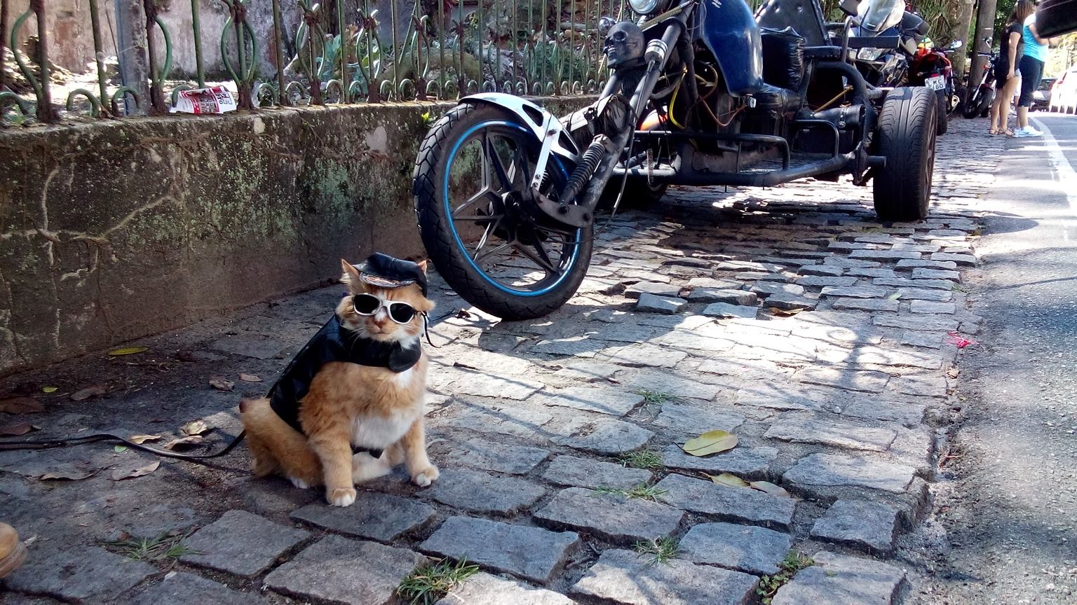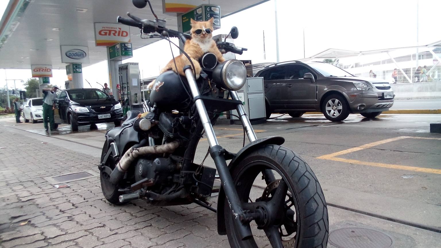 preciso de um gato de óculos pra andar na moto comigo
